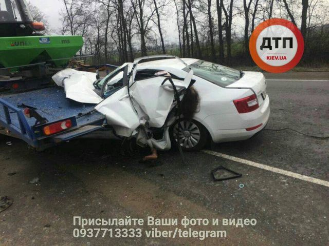 На Одеські трасі, що під Києвом, дівчина-водій не розминулася з евакуатором.