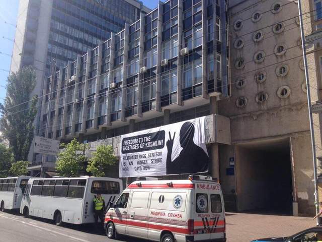Представники управління реклами КМДА вимагали прибрати банер, який на Будинку кіно у Києві вивісили на підтримку українського режисера, ув'язненого у Росії Олега Сенцова.